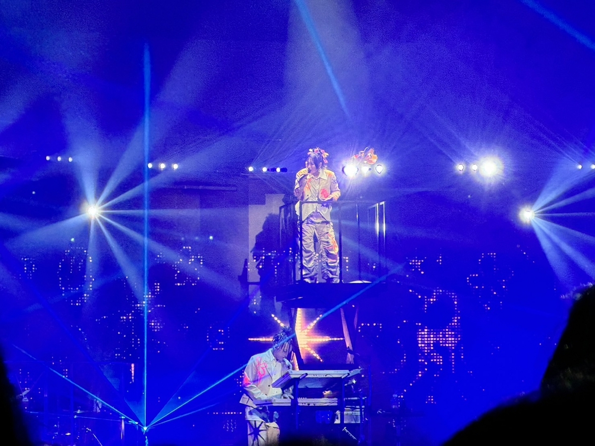 開演してYOASOBIが登場すると、後ろにいた女の子二人組がAyaseとikuraを見て「でかっ」と溢していたが、私もまさに同じことを思っていた。想定していたサイズのAyaseとikuraの3倍くらい大きかった。つまりそれくらいZeppの箱が小さく客席からの距離が近いのだ。YOASOBIのライブは終始スマートフォンでの写真撮影がOKとされており(動画はNG)、会場の最後方にいたにも関わらずiPhone15Proで15倍にして撮影すると、それなりに近くにいるような写真が撮影できた。後方から見ていたからより感じられたが、みんなが思い思いにスマートフォーンで撮影しているそのスマホの画面すらも煌びやかな会場を演出しているようだった。ikuraちゃんの天使のような歌声が会場いっぱいに響いて身も心も浄化されるようだった。